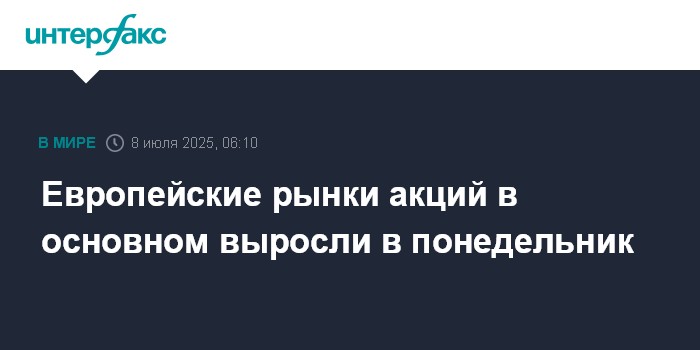 Москва. 8 июля. INTERFAX.RU - Фондовые индексы крупнейших стран Западной Европы в основном выросли по итогам торгов в понедельник, инвесторы оценивали статданные и продолжали следить за развитием ситуации в международной торговле.