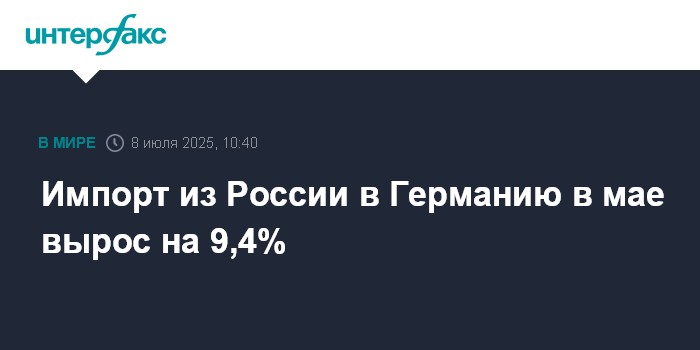 Москва. 8 июля. INTERFAX.RU - Германия сократила экспорт в Россию в мае на 12,1% по сравнению с апрелем - до 534 млн евро, говорится в отчете Федерального статистического управления ФРГ (Destatis).