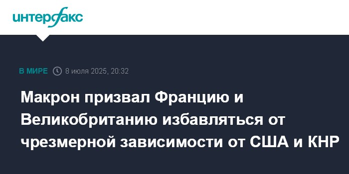 Макрон призвал Францию и Великобританию избавляться от чрезмерной зависимости от США и КНР
