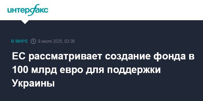 Москва. 9 июля. INTERFAX.RU - В Евросоюзе изучают возможность формирования специального фонда размером 100 млрд евро для поддержки Украины с 2028 года, сообщил Bloomberg.