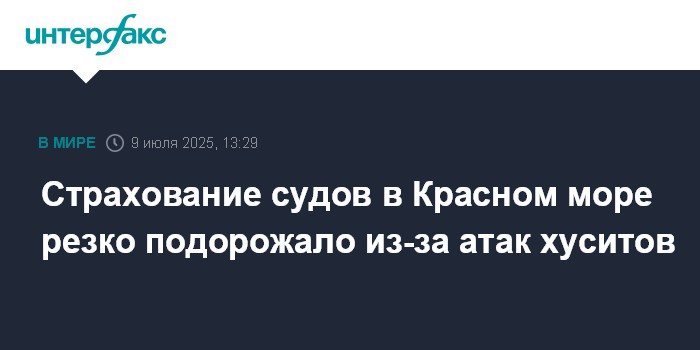 Москва. 9 июля. INTERFAX.RU - Стоимость страхования судов, проходящих через Красное море, резко выросла после возобновления атак хуситов, пишет Financial Times со ссылкой на данные крупнейшего в мире страхового брокера Marsh McLennan.