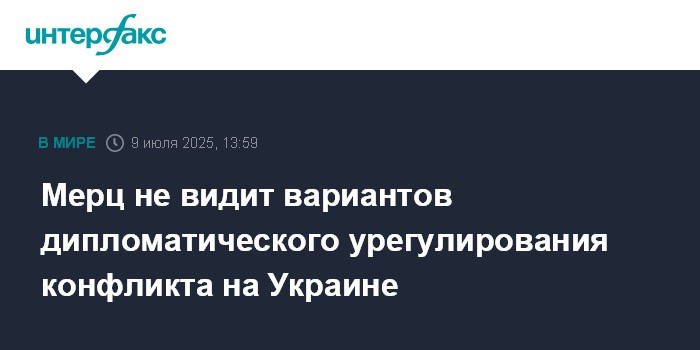 Москва. 9 июля. INTERFAX.RU - Канцлер Германии Фридрих Мерц заявил в Бундестаге, что утрачены все возможности для урегулирования конфликта на Украине дипломатическим путем, сообщают европейские СМИ.