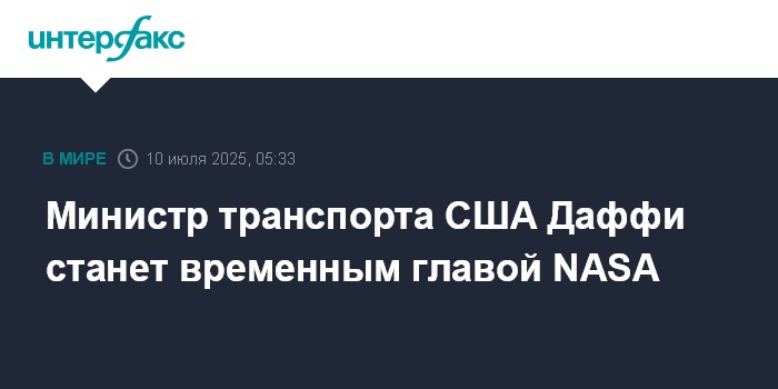 Москва. 10 июля. INTERFAX.RU - Президент США Дональд Трамп предложил министру транспорта Шону Даффи временно возглавить Национальное управление по аэронавтике и исследованию космического пространства (NASA).