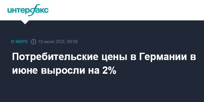 Москва. 10 июля. INTERFAX.RU - Потребительские цены в Германии, гармонизированные со стандартами Евросоюза, в июне увеличились на 2% относительно того же месяца прошлого года, согласно окончательным данным Федерального статистического управления страны (Destatis).