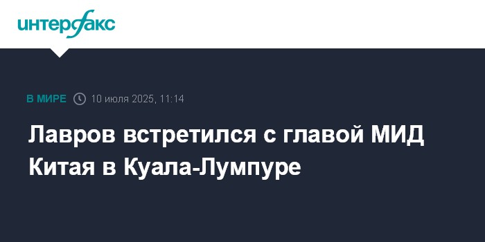 Москва. 10 июля. INTERFAX.RU - Министр иностранных дел России Сергей Лавров встретился с главой МИД Китая Ван И в Куала-Лумпуре.
