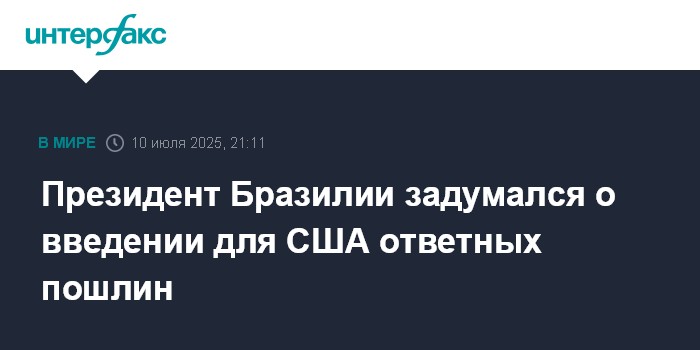 Москва. 10 июля. INTERFAX.RU - Президент Бразилии Луис Инасиу Лула да Силва изучает возможность применения аналогичных мер в ответ на решение США ввести пошлины в 50% на бразильские товары, сообщает Globo.
