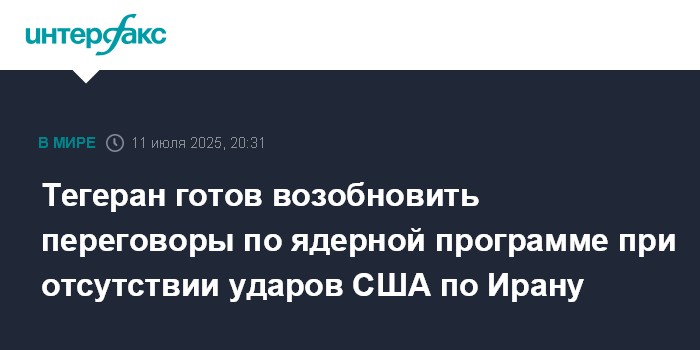 Тегеран готов возобновить переговоры по ядерной программе при отсутствии ударов США по Ирану