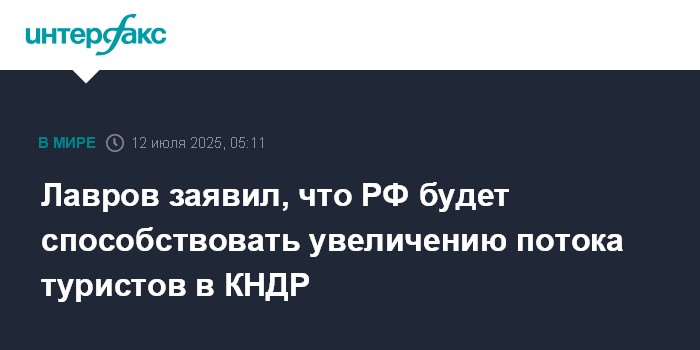 Москва. 12 июля. INTERFAX.RU - Российские власти будут способствовать увеличению туристического потока из РФ на северокорейский курорт Вонсан, создавая для этого условия, включая вопрос авиасообщения, заявил в субботу глава МИД России Сергей Лавров.