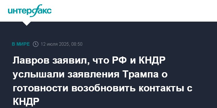 Лавров заявил, что РФ и КНДР услышали заявления Трампа о готовности возобновить контакты с КНДР