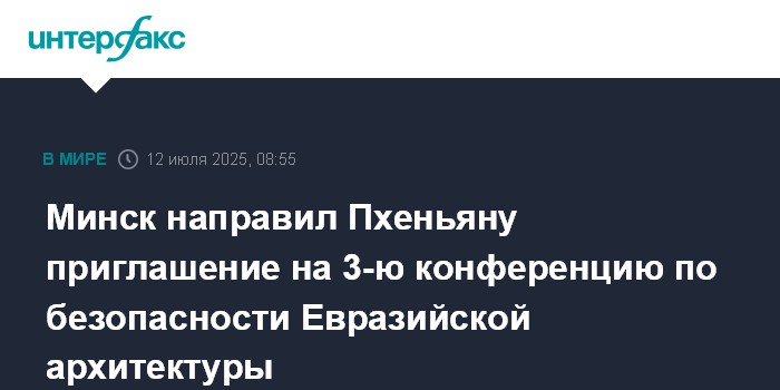 Москва. 12 июля. INTERFAX.RU - Белоруссия при поддержке РФ направила КНДР приглашение принять участие в 3-й конференции по безопасности Евразийской архитектуры, в Пхеньяне его рассматривают, заявил в субботу глава МИД РФ Сергей Лавров.