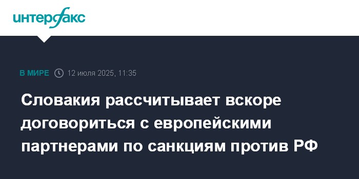 Москва. 12 июля. INTERFAX.RU - Братислава в ближайшие дни намерена урегулировать с европейскими партнерами проблему относительно очередного пакета антироссийских санкций.
