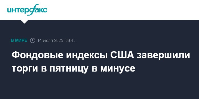 Москва. 14 июля. INTERFAX.RU - Американские фондовые индексы завершили торги в пятницу снижением на фоне эскалации напряженности в международной торговле.