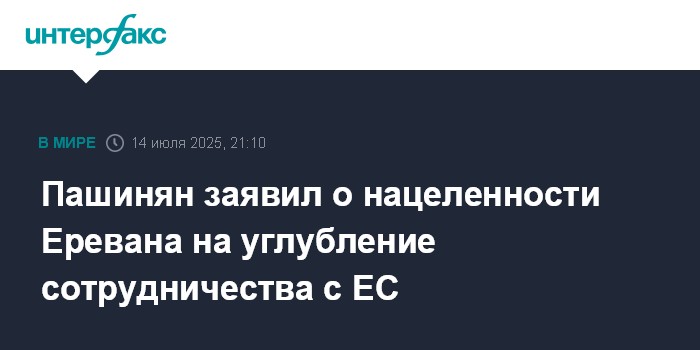 Пашинян заявил о нацеленности Еревана на углубление сотрудничества с ЕС