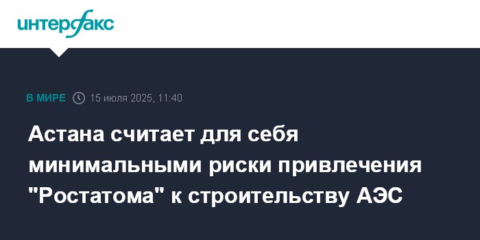Астана считает для себя минимальными риски привлечения "Ростатома" к строительству АЭС