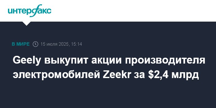 Закрытие сделки ожидается в четвертом квартале 2025 года. Впоследствии Geely планирует вывести бумаги Zeekr с NYSE.
