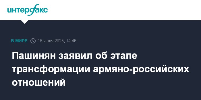 Москва. 16 июля. INTERFAX.RU - Отношения Армении и России находятся в этапе трансформации и должны стать лучше, чем прежде, заявил премьер-министр республики Никол Пашинян.