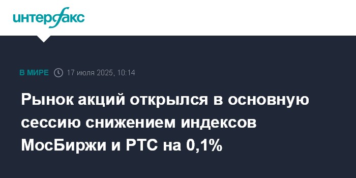 Рынок акций открылся в основную сессию снижением индексов МосБиржи и РТС на 0,1%