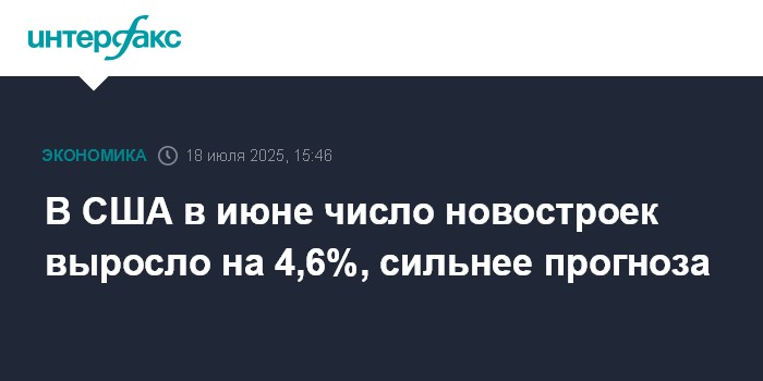 В США в июне число новостроек выросло на 4,6%, сильнее прогноза