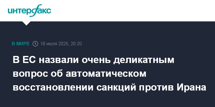 На брифинге в Брюсселе в пятницу он назвал "очень деликатным" заданный ему вопрос о snapback - автоматическом восстановлении санкций против Ирана в контексте Совместного всеобъемлющего плана действий (СВПД) по иранской ядерной программе и резолюции СБ ООН 2231.
