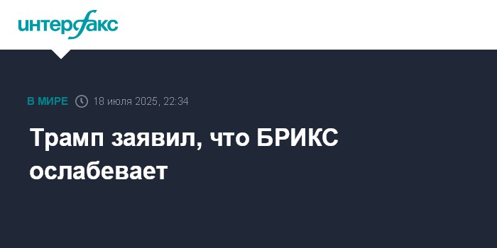 Москва. 18 июля. INTERFAX.RU - БРИКС быстро теряет позиции, заявил в пятницу президент США Дональд Трамп.