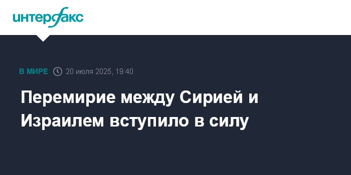 Москва. 20 июля. INTERFAX.RU - Перемирие между Сирией и Израилем начало действовать в воскресенье, заявил посол США в Турции и по совместительству спецпосланник США по Сирии Том Баррак.