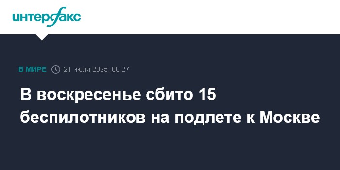 Москва. 21 июля. INTERFAX.RU - Еще два дрона уничтожено на подлете к Москве вечером в воскресенье, сообщил мэр города Сергей Собянин.