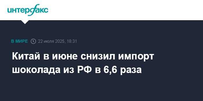 Китай в июне снизил импорт шоколада из РФ в 6,6 раза