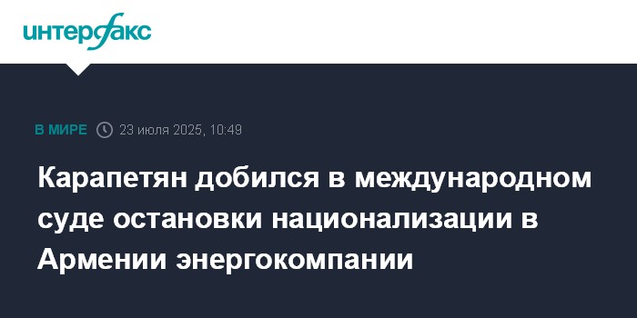 Москва. 23 июля. INTERFAX.RU - Арестованный в Ереване по обвинению в призывах к захвату власти российский бизнесмен армянского происхождения, глава группы компаний "Ташир" Самвел Карапетян одержал победу в международном арбитражном суде по делу о национализации правительством Армении принадлежащей ему компании "Электрические сети Армении".