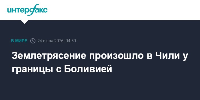 Москва. 24 июля. INTERFAX.RU - Подземный толчок магнитудой 5,5 зафиксирован в северной части Чили, сообщает Алтае-Саянский филиал Единой геофизической службы РАН.
