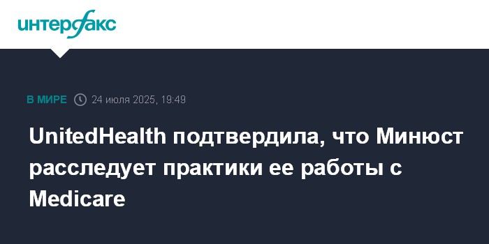 Москва. 24 июля. INTERFAX.RU - UnitedHealth Group Inc. подтвердила, что Минюст США проводит уголовное расследование в отношении компании, касающееся ее практик работы со страховой программой Medicare.