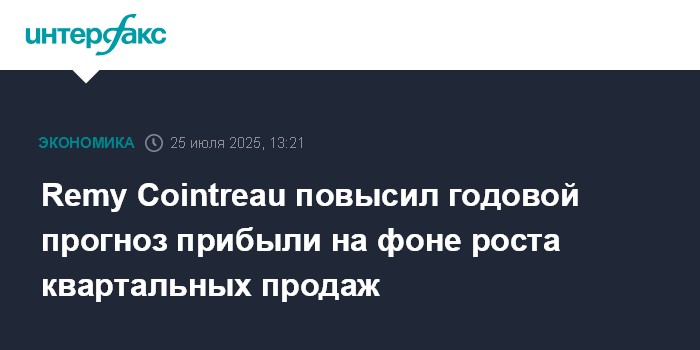Москва. 25 июля. INTERFAX.RU - Французский производитель алкогольной продукции Remy Cointreau SA увеличил продажи в первом финансовом квартале впервые с 2023 года и повысил годовой прогноз прибыли.