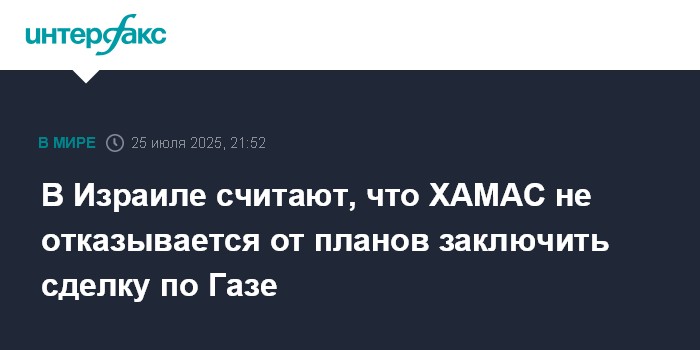 В Израиле считают, что ХАМАС не отказывается от планов заключить сделку по Газе