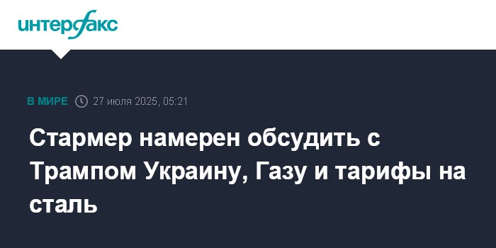 Москва. 27 июля. INTERFAX.RU - В ходе неформальной встречи премьер-министра Великобритании Кира Стармера и президента США Дональда Трампа в рамках частного визита последнего в Шотландию планируется обсудить вопросы тарифов на британскую сталь, а также Украину и сектор Газа, сообщает Independent.