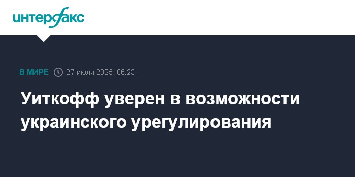 Москва. 27 июля. INTERFAX.RU - Спецпосланник президента США Стив Уиткофф считает, что достижение мирного соглашения между Россией и Украиной возможно и намерен этого добиться.