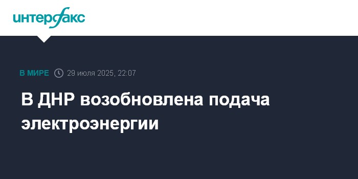 Москва. 29 июля. INTERFAX.RU - Восстановлено электроснабжение всех абонентов Донецкой агломерации, поврежденное в результате ночного налёта БПЛА, сообщил врио председателя правительства Донецкой Народной Республики Андрей Чертков.