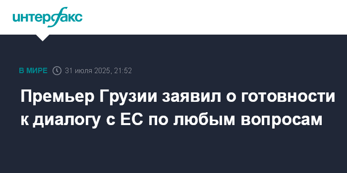 Москва. 31 июля. INTERFAX.RU - Грузинское руководство готово к диалогу с Евросоюзом по любым вопросам для нормализации отношений, заявил в четверг журналистам премьер-министр Ираклий Кобахидзе.