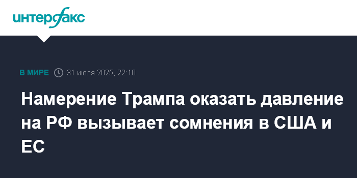 Намерение Трампа оказать давление на РФ вызывает сомнения в США и ЕС