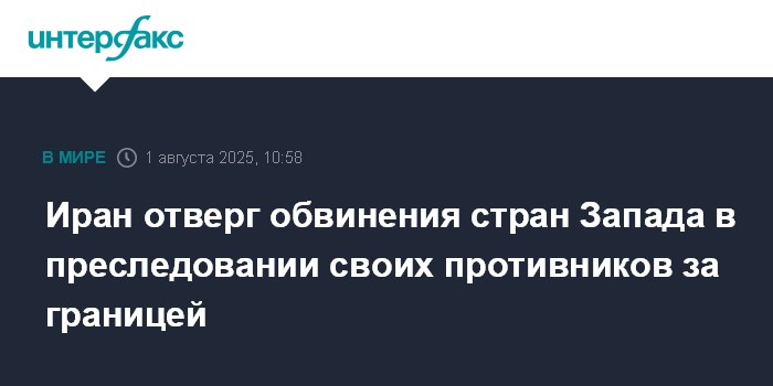 Москва. 1 августа. INTERFAX.RU - Тегеран опровергает обвинения со стороны 14 западных стран в том, что иранские спецслужбы занимаются преследованием политических оппонентов за рубежом, сообщает в пятницу агентство "Тасним" со ссылкой на иранский МИД.