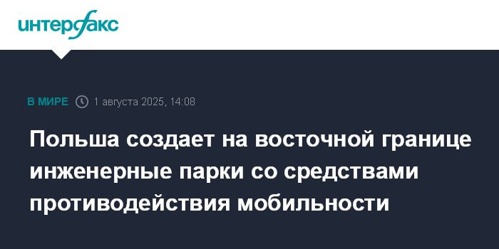 Москва. 1 августа. INTERFAX.RU - Вдоль всей восточной границы Польши формируются инженерные парки с "зубами дракона", противотанковыми "ежами" и другими средствами контрмобильности, сообщил польским журналистам замглавы Минобороны Польши Цезарий Томчик.