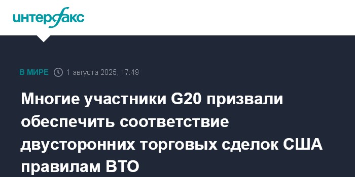 Многие участники G20 призвали обеспечить соответствие двусторонних торговых сделок США правилам ВТО