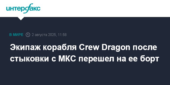 Песков, Макклейн, Айерс и Ониси, прибывшие на МКС в марте в рамках миссии Crew-10, должны покинуть станцию 6 августа. Их корабль Crew Dragon приводнится в Тихом океане вблизи берегов Калифорнии.