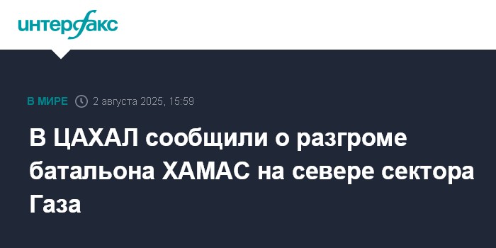 Москва. 2 августа. INTERFAX.RU - В Армии обороны Израиля (ЦАХАЛ) в субботу заявили, что израильские военные ликвидировали батальон группировки ХАМАС, который действовал в городе Бейт-Ханун на севере сектора Газа, сообщает The Times of Israel.