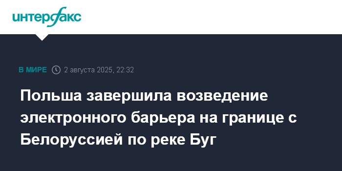 Москва. 2 августа. INTERFAX.RU - Завершено строительство электронного барьера в Люблинском воеводстве Польши на водном участке границы с Белоруссией, сообщил в субботу министр внутренних дел и администрации Марцин Кервинский.