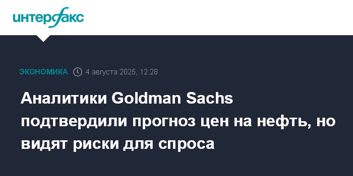 Москва. 4 августа. INTERFAX.RU - Аналитики Goldman Sachs Group Inc. подтвердили прогнозы цен на Brent на четвертый квартал 2025 года и 2026 год, несмотря на принятое странами ОПЕК+ решение об очередном наращивании добычи.