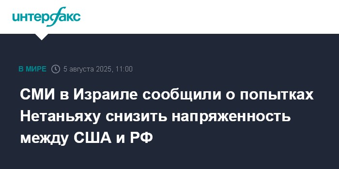 Москва. 5 августа. INTERFAX.RU - Премьер Израиля Биньямин Нетаньяху предпринимает действия, направленные на деэскалацию напряженности в отношениях между американским президентом Дональдом Трампом и президентом России Владимиром Путиным, сообщает во вторник израильский телеканал "Кан" со ссылкой на источники.