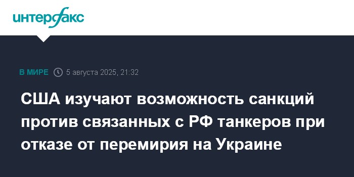 Москва. 5 августа. INTERFAX.RU - Власти США рассматривают возможность добавить в санкционные списки по РФ связанные с ней танкеры, если Россия к пятнице не пойдет на прекращение огня на Украине, сообщает во вторник Financial Times (FT) со ссылкой на источники.
