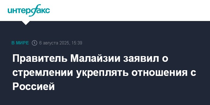 Правитель Малайзии заявил о стремлении укреплять отношения с Россией
