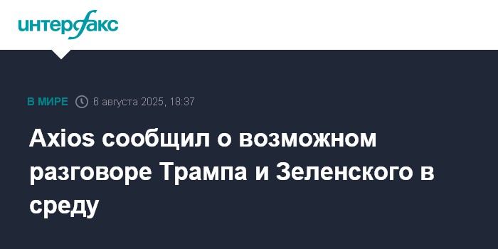 "Ожидается, что Трамп поговорит с Зеленским в среду, после прошедшей встречи спецпосланника президента США Стива Уиткоффа с президентом РФ Владимиром Путиным, заявил источник", - написал журналист Axios Барак Равид в социальной сети X.
