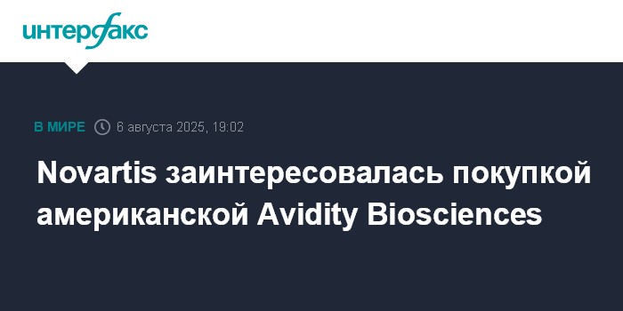 Москва. 6 августа. INTERFAX.RU - Novartis AG интересуется покупкой американской биотехнологической компании Avidity Biosciences Inc. с капитализацией в $4,3 млрд, пишет газета Financial Times со ссылкой на информированные источники.