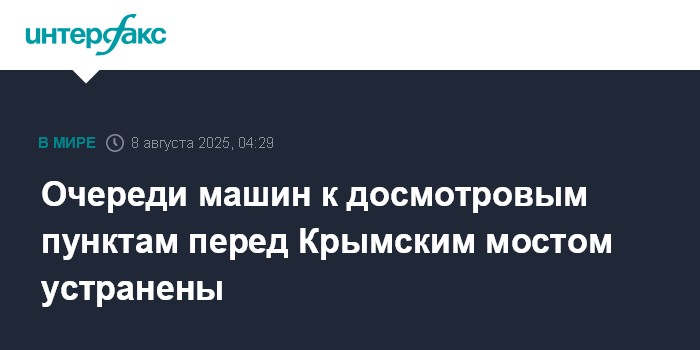 Москва. 8 августа. INTERFAX.RU - Очереди к досмотровым пунктам при въезде на Крымский мост полностью ликвидированы, сообщили в пятницу в инфоцентре, освещающем ситуацию на автомобильных подходах к мосту.